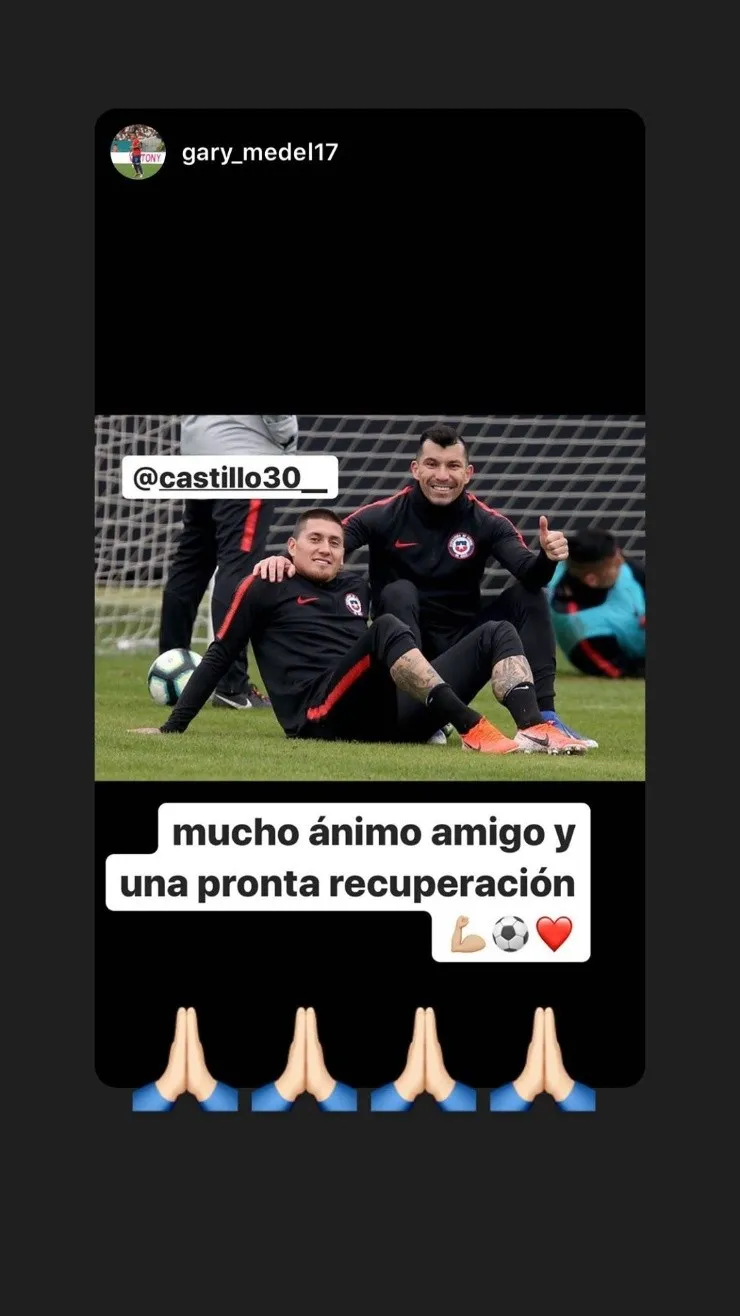 No fue lo único. El Nico también reposteó el saludo de apoyo que le envió el capitán de la selección chilena, Gary Medel. “Mucho ánimo, amigo, y una pronta recuperación”, escribió el Pitbull, que también se recupera de una lesión.