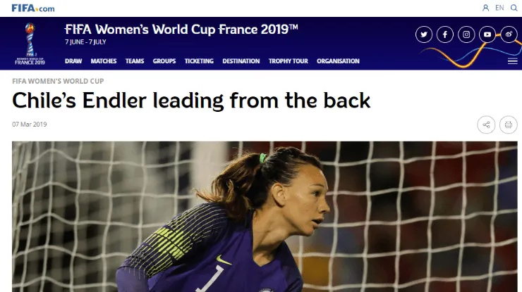 Mientras en Chile se conmemora el Día de la Mujer y se debate a profundidad sobre los roles de género y el tema de la profunda desigualdad que se vive en las sociedades de este hemisferio, el portal oficial de la FIFA publicó una nota en su edición en inglés a la capitana de la selección chilena, Christiane Endler, respecto a su rol en la Roja como motor del desarrollo del fútbol femenino en nuestro país.