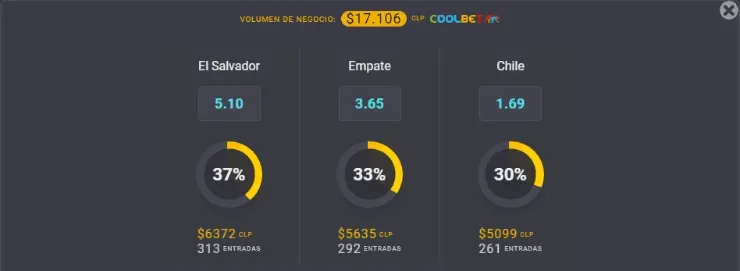 Para el OSO de Coolbet el favorito para ganar este partido amistoso es Chile, que paga 1,69 veces lo que juegues, por sobre los 5,10 que paga El Salvador, si piensas que ellos ganarán. Ahora, si eres de quienes cree que termina en empate, como en el duelo anterior ante México, paga 3,65 veces lo que apuestes.