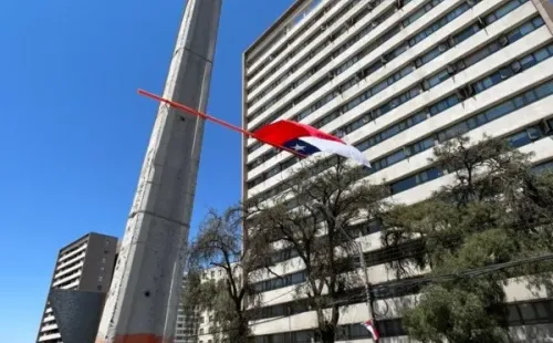 Las banderas a la espera de la primera delegación de la Roja. Foto: Cristopher Antúnez