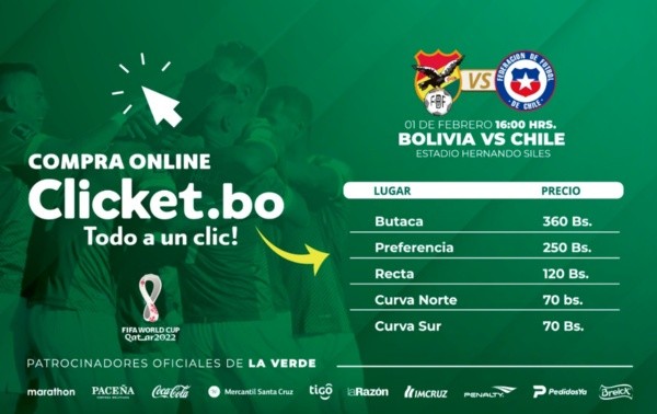 De hecho, con prácticamente un mes de anticipación ya están a la venta las entradas para el compromiso que se disputará el martes 1 de febrero en el estadio Hernando Siles y se conocen sus precios. La más económica está en los 70 bolivianos mientras que la más costosa se eleva hasta los 360.