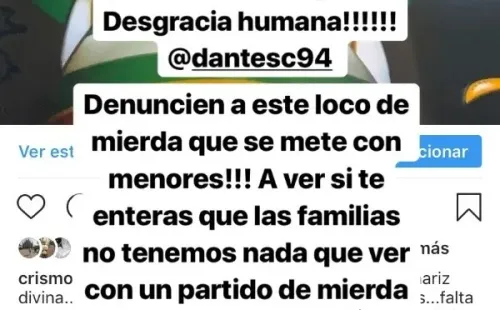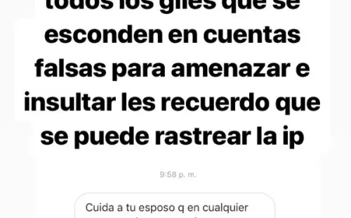 Tras la jugada, Morales recibió un mensaje privado desde el perfil Santiago.lopardo: “cuida a tu esposo que en cualquier momento le pego un tiro, o yo o una persona que manda mi tío”.