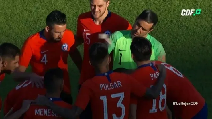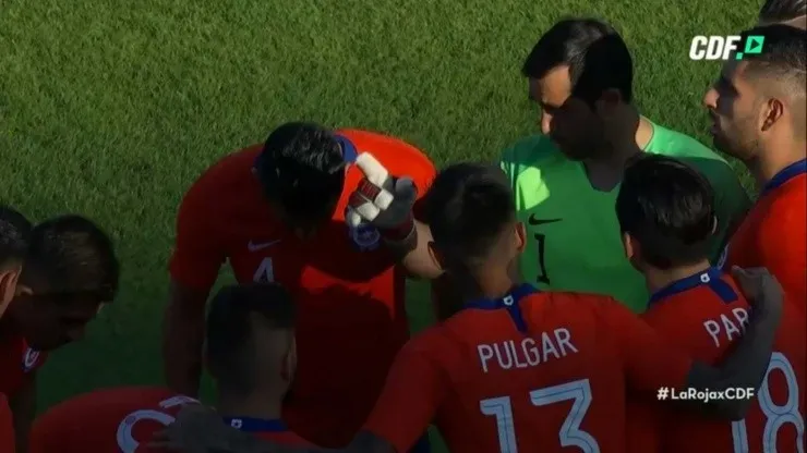 Minutos antes del comienzo del duelo amistoso que se juega en Alicante, Arturo Vidal y Claudio Bravo aleonaron a sus compañeros en una emotiva charla-arenga.