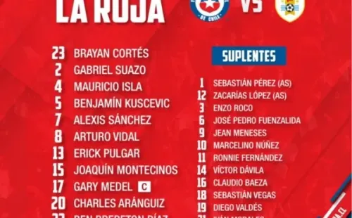 Así las cosas, Chile va ante Uruguay con Brayan Cortés; Mauricio Isla, Gary Medel, Benjamín Kuscevic, Gabriel Suazo; Érick Pulgar, Charles Aránguiz, Arturo Vidal; Joaquín Montecinos, Ben Brereton Díaz y Alexis Sánchez.