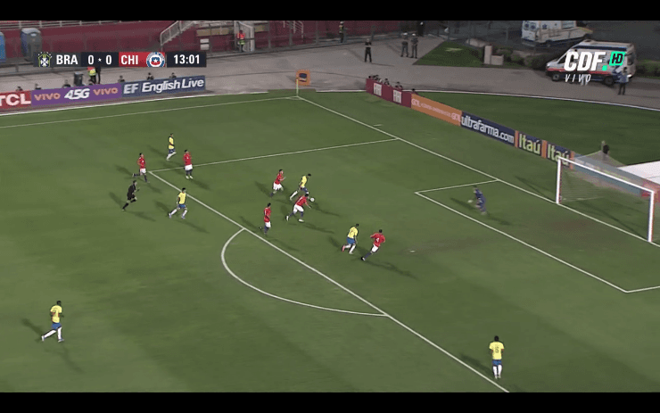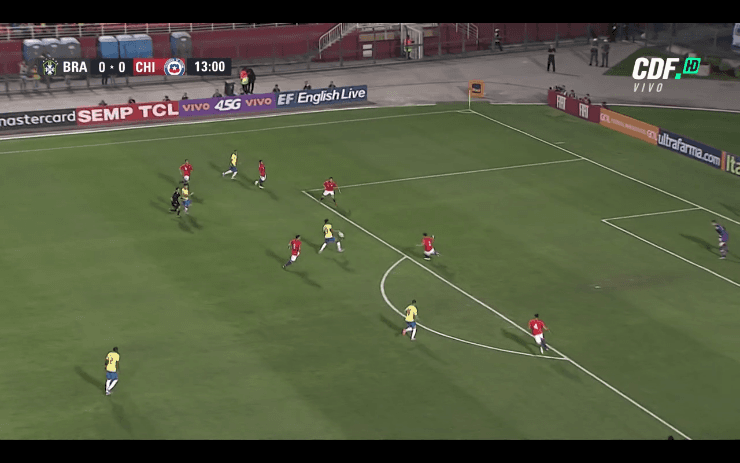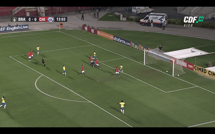 Tras un complicado inicio para la Roja por los constantes ataques de la delantera brasileña, Matheus Cunha abrió el marcador a los 13′ minutos.