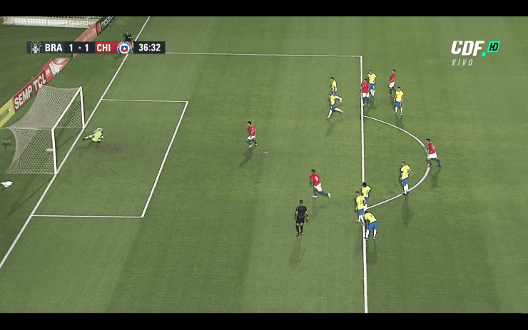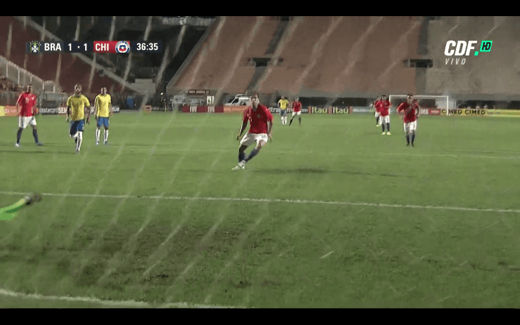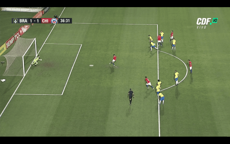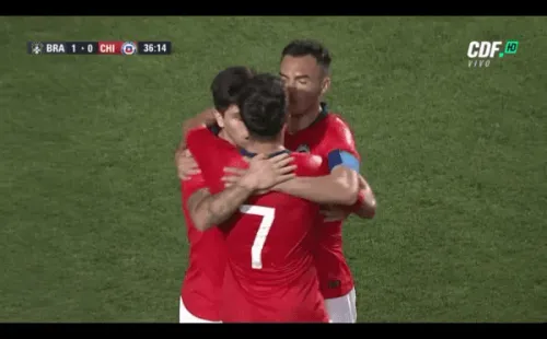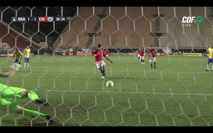 Chile consiguió el empate ante Brasil desde el punto penal. El juez marcó una mano de un defensor brasileño y Víctor Dávila no falló al minuto 36′.