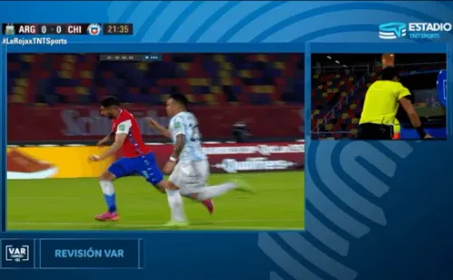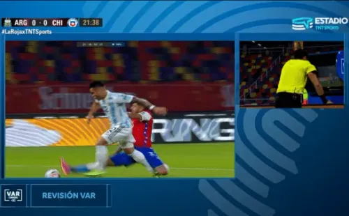 El penal llegó en los 19’ por una falta en el área de Guillermo Maripán a Lautaro Martínez. El defensor chileno enganchó con su muslo izquierdo el gemelo derecho del trasandino.