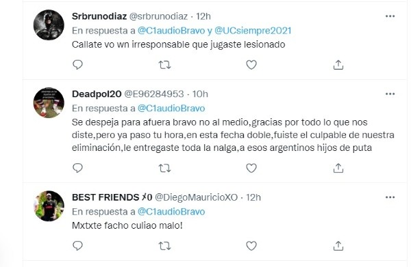 Pese a que la mayoría de las respuestas fueron positivas, no faltaron los únicos y especiales que aparecieron con sus comentarios fuera de lugar, insultando al portero de la Generación Dorada y pidiéndole en pésimos términos que no vuelva al arco de Chile.
