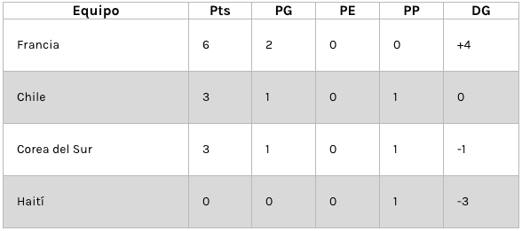 El duelo entre Chile y Corea del Sur está programado para este sábado a partir de las 17:00 horas. Ambos elencos suman 3 puntos, pero la Roja se queda con el segundo puesto por diferencia de goles (0 contra -1).