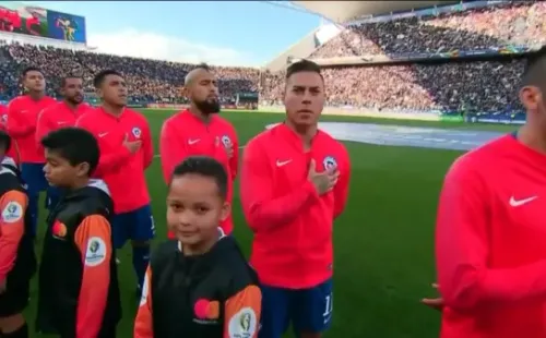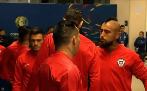 Antes de salir a la cancha contra Argentina, Arturo Vidal fue captado dándole un fuerte abrazo a Arias junto a palabras de apoyo, confianza y tranquilidad.