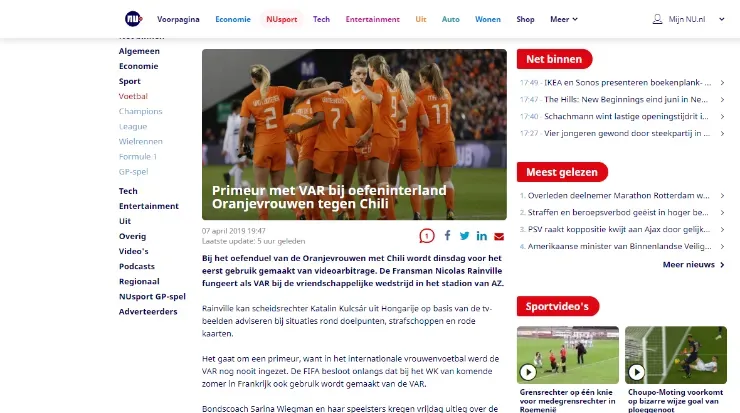 “El francés Nicolas Rainville actúa como VAR en el partido amistoso en el estadio de AZ”, reseñó el portal Nu.nl. “Rainville puede aconsejar al árbitro Katalin Kulcsár de Hungría sobre la base de las imágenes de TV en situaciones relacionadas con goles, penalizaciones y tarjetas rojas”, agregan.