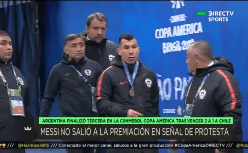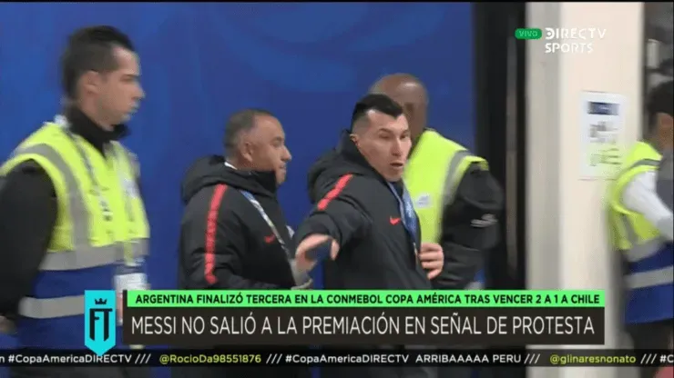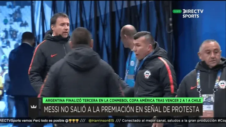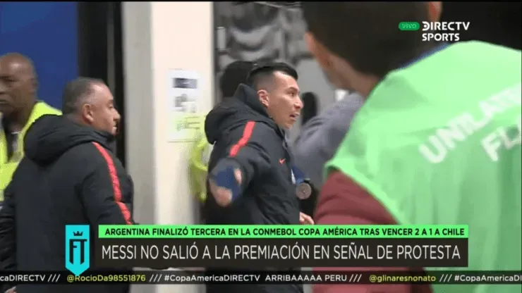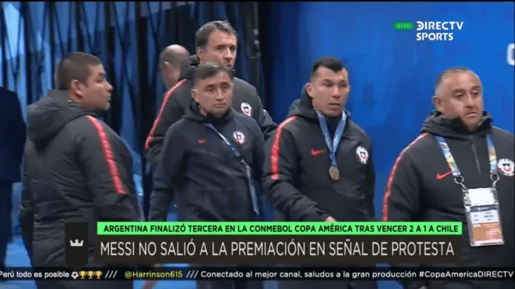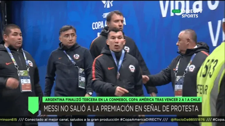 Luego de la ceremonia de premiación, en la que La Roja también recibió el cuarto lugar recibió medallas, el Pitbull salió bastante molesto y se dejó ver por las cámaras de Directv su reacción al momento.