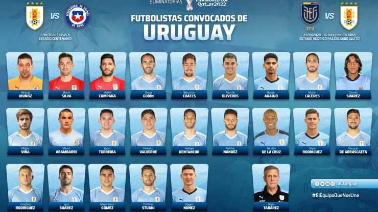 La selección de fútbol de Uruguay dio a conocer esta mañana la convocatoria del entrenados Oscar Washington Tabárez para la primera doble fecha de las eliminatorias, donde enfrentará a Chile y Ecuador el 8 y 13 de octubre respectivamente.