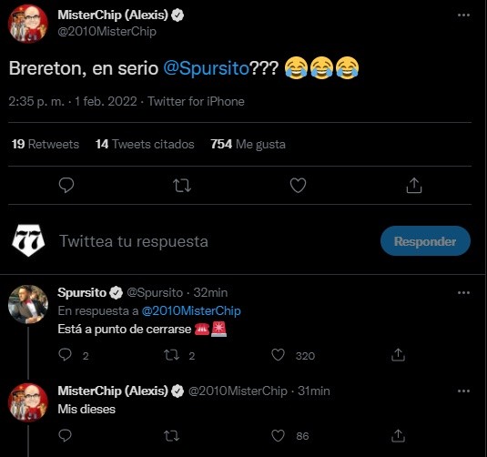 “¿Brereton, en serio Spursito?”, publicó MisterChip con emojis de risas hasta las lágrimas. La publicación puede tomarse por el lado que el estadístico “chaquetea” las condiciones del delantero inglés de la selección chilena, o que simplemente se rio de la broma y/o alcance que tuvieron las palabras del streamer.