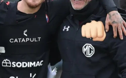 El mensaje de Nicolas Castilló incluyó la siguiente frase: “Que gusto verlo profe, mucho éxito, menos contra usted sabe quien”, escribió el atacante, quien aprovechó los emojis para tapar las dos insignias de Colo Colo, en el gorro y el polerón de Mario Salas.