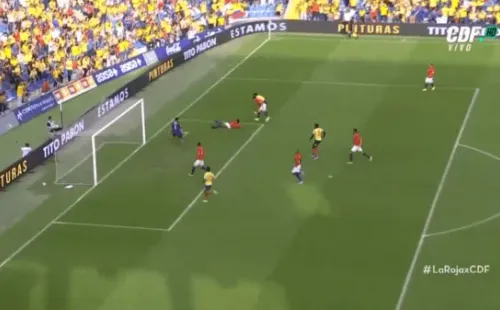 Cuando el reloj marcaba 16 minutos del amistoso entre Chile y Colombia, se vivió la primera llegada real de peligro del cuadro cafetero.
