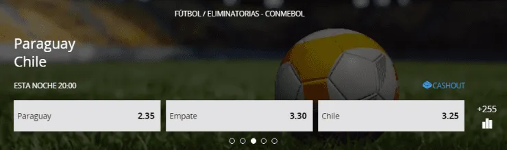 Para Betsson, el gran favorito para ganar en este partido de las Eliminatorias Sudamericanas al Mundial de Qatar 2022 es Paraguay, que paga 2,35 veces lo que juegues, por sobre los 3,25 que paga Chile, si los dirigidos de Martín Lasarte ganan en Asunción, el resultado que todos esperamos. Pero, si piensas que termina en empate, paga 3,30 veces lo que apuestes.