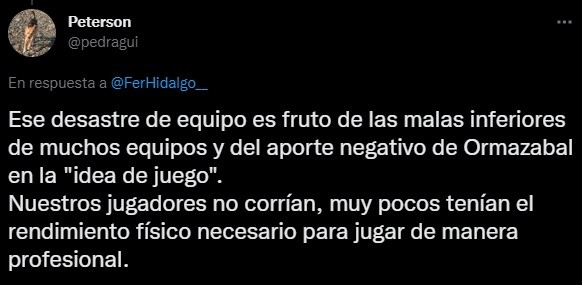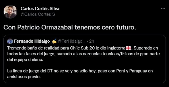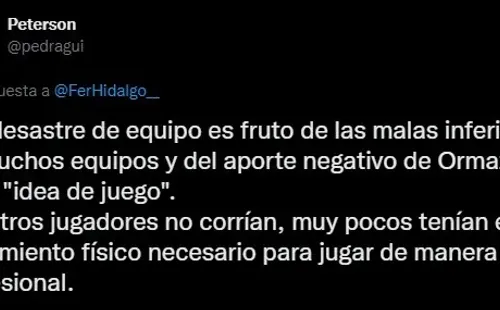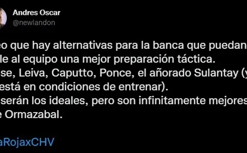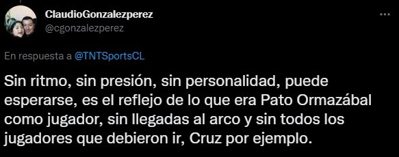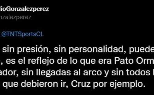 Es por eso que en las redes sociales dejaron ver su inconformidad con el entrenador del equipo, Patricio Ormazábal. Gran parte de los comentarios que se dejaron ver en Twitter sobre el desempeño del estratega fueron negativos por las pocas respuestas que tuvo frente a un adversario realmente complicado.