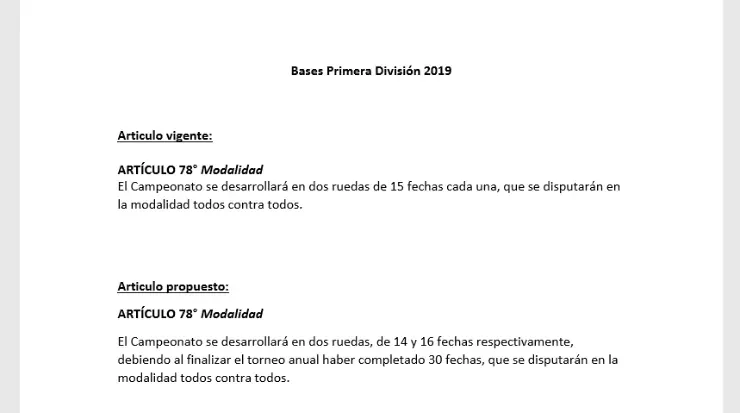 Según reportó Radio Agricultura, el ente rector del fútbol nacional propondrá una primera rueda de 14 fechas, y una segunda de 16. Dicha propuesta será entregada al consejo de presidentes de la ANFP. Lo complicado es que para que aquello sea aprobado, dicha modificación en las bases del campeonato debe ser aprobada por unanimidad.