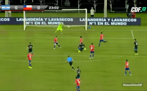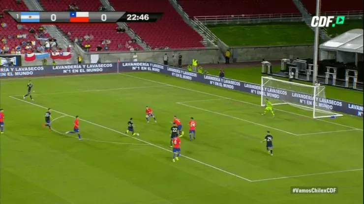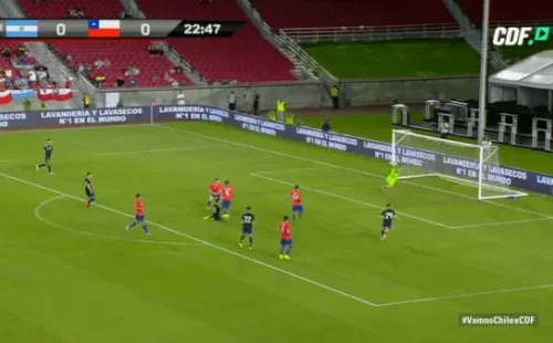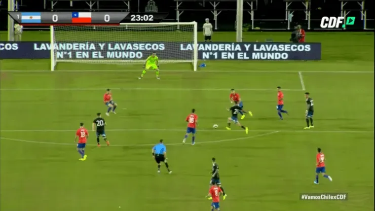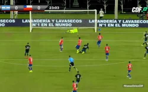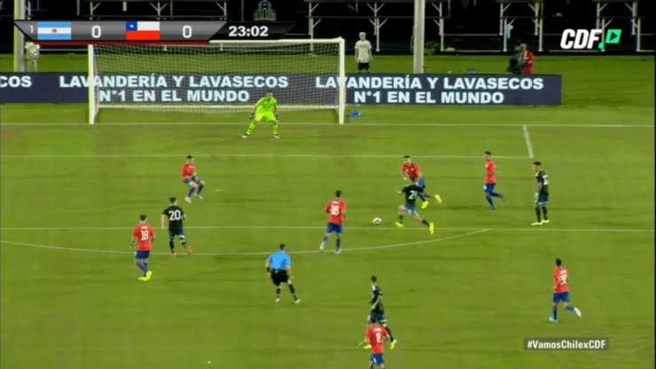 Al minuto 23′ del primer tiempo, la Joya de la Juventusaprovechó un buen pase de Lautaro Martínez para disparar a la portería chilena, pero el meta nacional contuvo el remate y mantuvo su arco en 0.