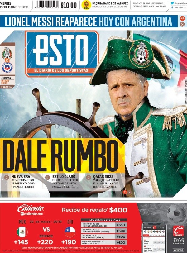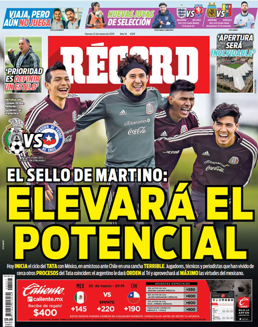 En México es puro optimismo y las principales portadas tienen frases como “El sello de Martino elevará el potencial”, “Destino Qatar” “De estreno” o “Dale Rumbo”. Revisa las imágenes acá abajo: