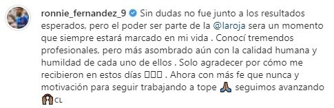 “Solo agradecer por cómo me recibieron en estos días. Ahora con más fe que nunca y motivación para seguir trabajando a tope. Seguimos avanzando”, finaliza.