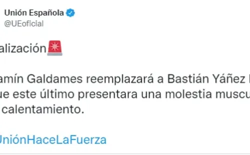 Los de Santa Laura anunciaron que se trató de una molestia muscular y su lugar fue tomado por Benjamín Galdames. Todo indica que todo esto se debe a precaución para que el atacante pueda acudir a la concentración de la Roja.
