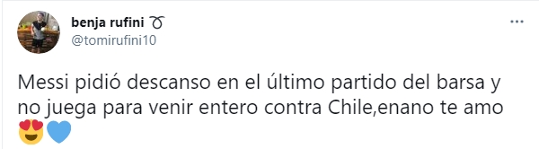 Pero hay condiciones. Según lo que expresan los hinchas trasandinos en Twitter, el sueño se completará con un triunfo sobre Chile en la final, en las condiciones que sea y con Lionel Mesis por fin ganando una definición con su selección.