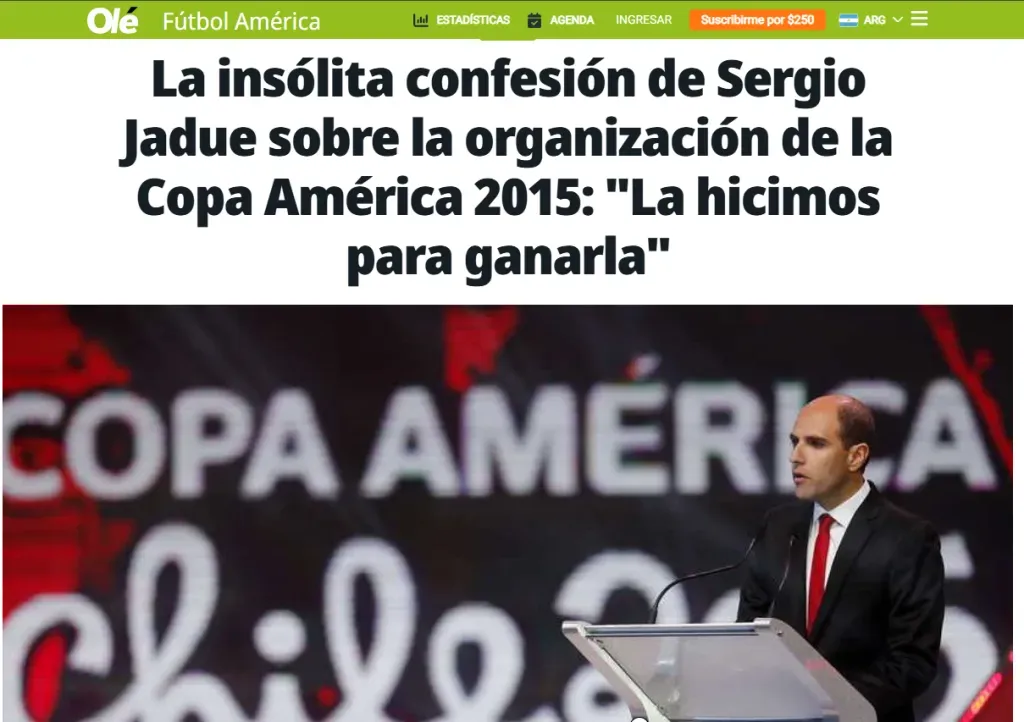 Además, en su publicación hicieron alusión directa al contexto del torneo. “Sergio Jadue, presidente de la Asociación Nacional de Fútbol Profesional de Chile en 2015, aseguró que ‘se armaron la Copa América para ganarla’ (!!!!!!). ‘No escatimamos en detalles’, agregó… Por aquel entonces, la Conmebol era presidida por Juan Ángel Napout”, complementaron.