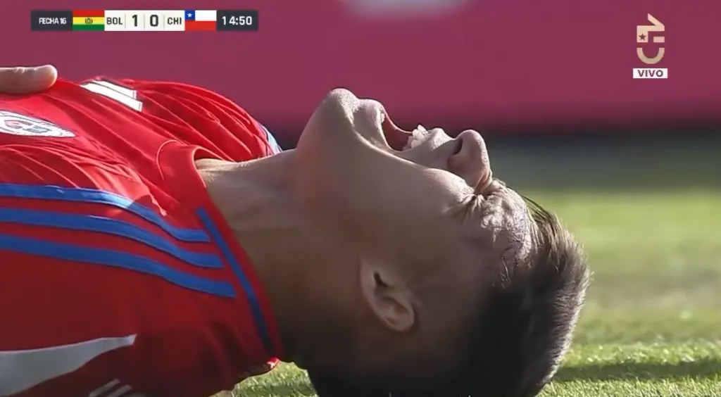 Lucas Cepeda no podía entender que Ostojich no haya sancionado con roja de inmediato aquella patada sobre Fabián Hormazábal en este partido clave que Chile jugó ante Bolivia por la fecha 16 de las Eliminatorias rumbo al Mundial 2026.