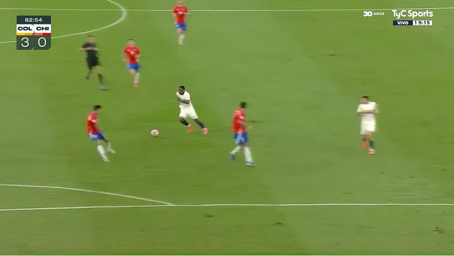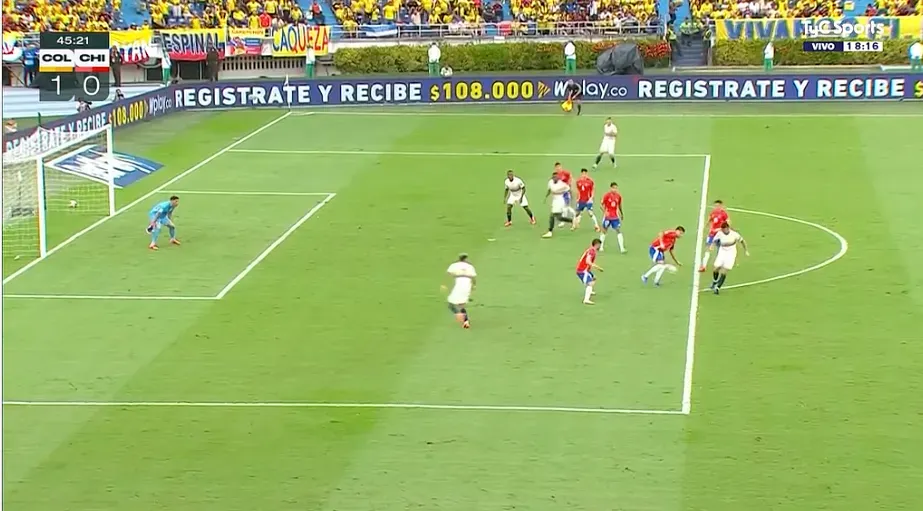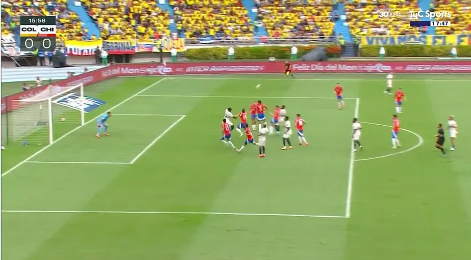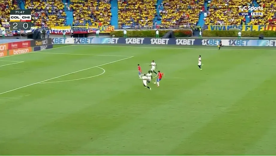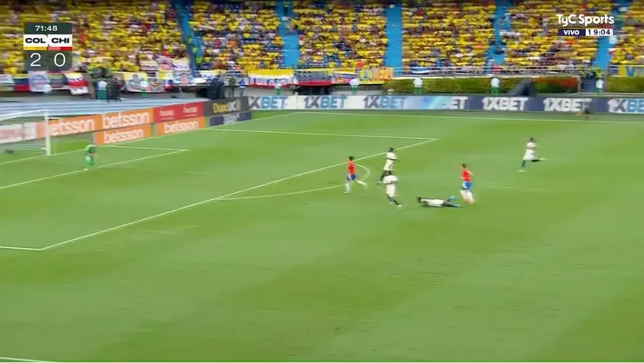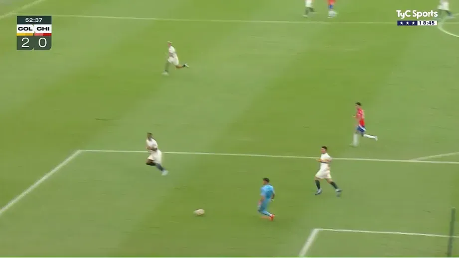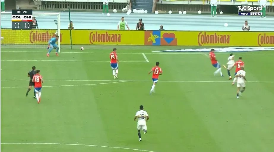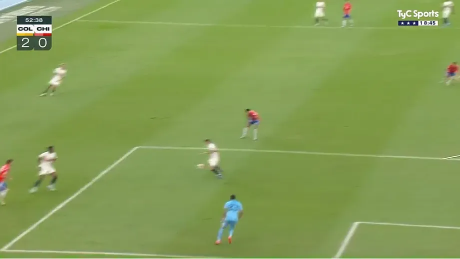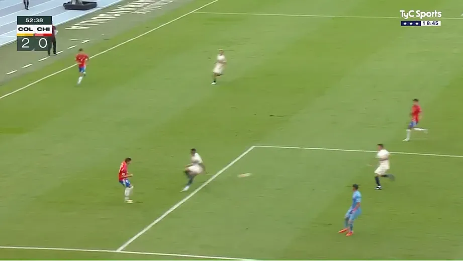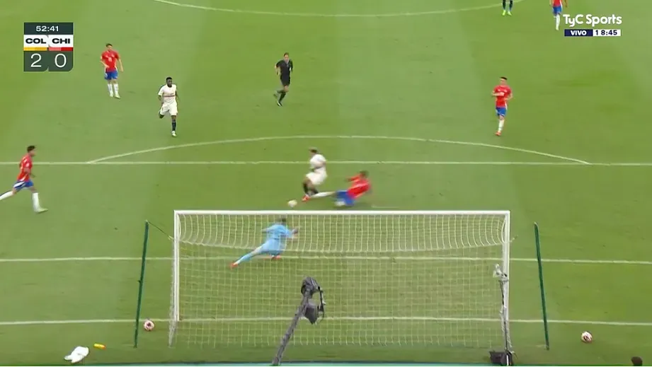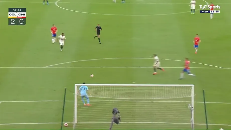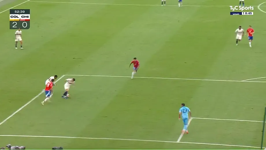 Tras ello, Chile no ajustó nada en ataque. Los cafeteros siguieron siendo protagonistas exclusivos del partido. Era de esperar que a los 52’, tras una horrenda equivocación en defensa, Colombia terminase anotando el segundo, por medio de Luis Díaz (52’).