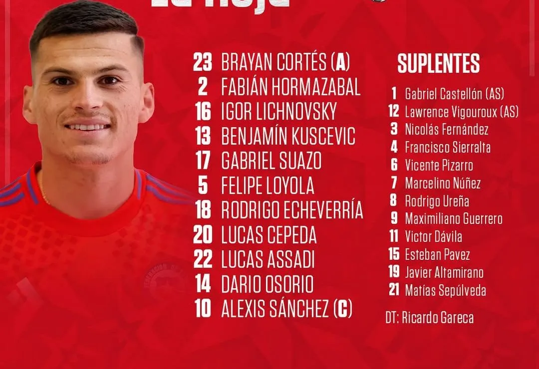 Igor Lichnovsky, que no juega un partido de agosto de 2024 por lesión en rodilla, en lugar de Francisco Sierralta, más el ingreso de LUCAS ASSADI por el suspendido Arturo Vidal, son las novedades de última hora de Ricardo Gareca para enfrentar a Bolivia en El Alto.