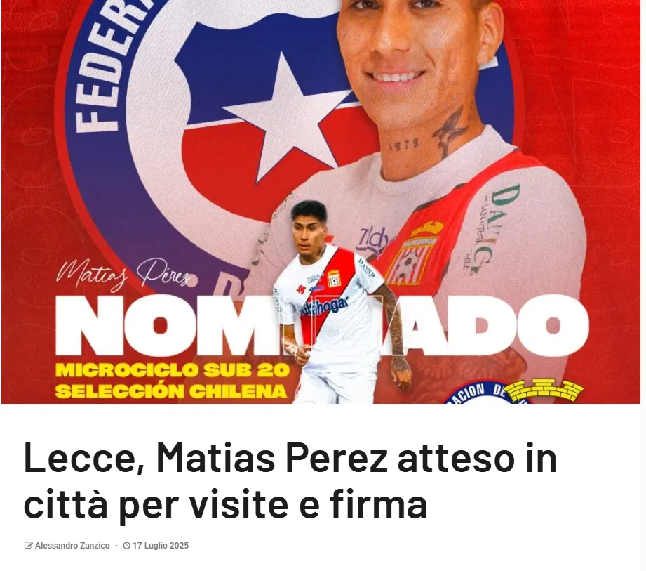“Pantaleo Corvino (director deportivo de Lecce) ha identificado al veinteañero sudamericano con un perfil para centrarse en el futuro y más allá”, cuenta la nota del periódico local.