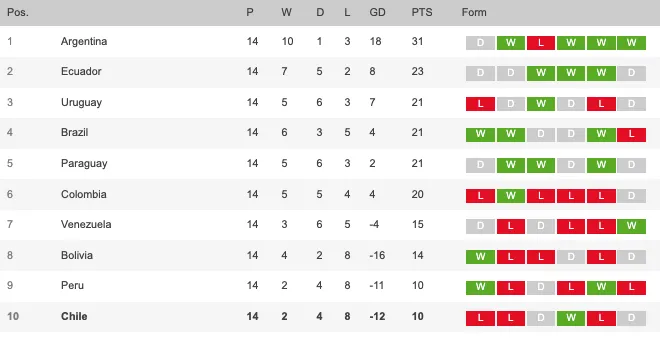 Así quedó la tabla de posiciones de las Eliminatorias Sudamericanas: