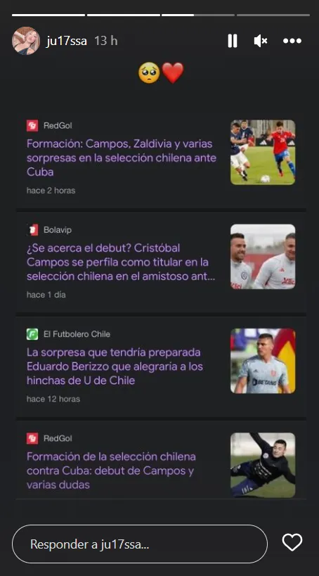 Y Campitos tendrá apoyo cercano en el reducto penquista: parte de su familia viajó hasta la región del Bío Bío para presenciar el encuentro. Así lo dejó saber la hermana del guardameta, Julissa Campos, quien compartió una imagen a través de sus historias de Instagram.