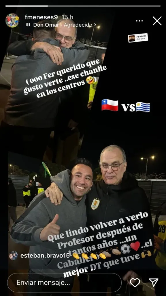 “Fer querido, que gusto verte. Ese chanfle en los centros”, fue lo que posteó junto a un abrazo que le dio a la salida del encuentro entre Chile y Uruguay por las eliminatorias.
