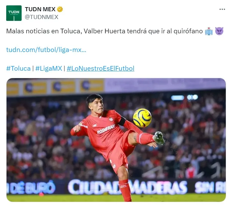 Según detalla la cadena TUDN, el ex Universidad Católica sufrió un golpe en su rodilla, la cual afectó a sus meniscos, por lo cual deberá pasar por el quirófano para solucionar este problema, y tendrá un tiempo máximo de recuperación de seis semanas.
