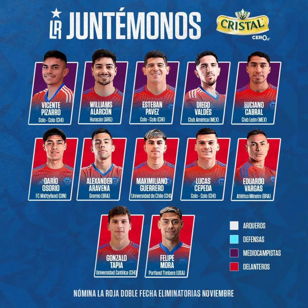 Además de los nombres recurrentes del Tigre, el entrenador suma a Francisco Sierralta y Vicente Pizarro, con Eduardo Vargas a la cabeza como el único jugador de la generación dorada de la selección chilena.