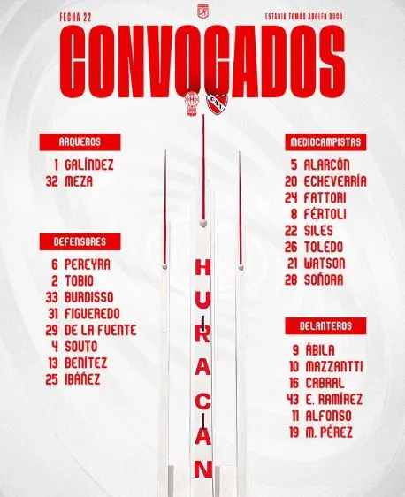 En la lista que publicó el equipo apodado El Globo en sus redes sociales, el chileno aparece entre los llamados al duelo contra Independiente de Avellaneda, de este sábado 9 de noviembre.