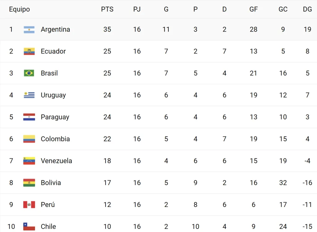 ¿Cómo quedó la tabla de posiciones de las Eliminatorias?