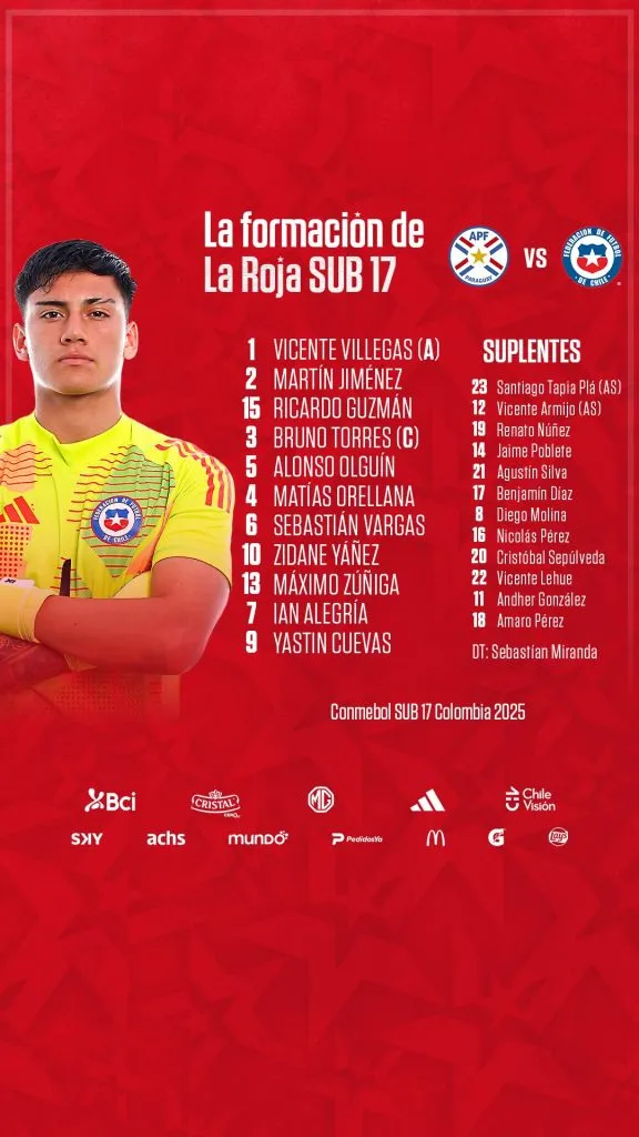 Las redes sociales de la selección chilena hicieron oficial la formación de la Roja Sub 17 con lo mejor que tiene, y así enfrentar el cierre de la fase de grupos en una “final” frente a la albirroja.