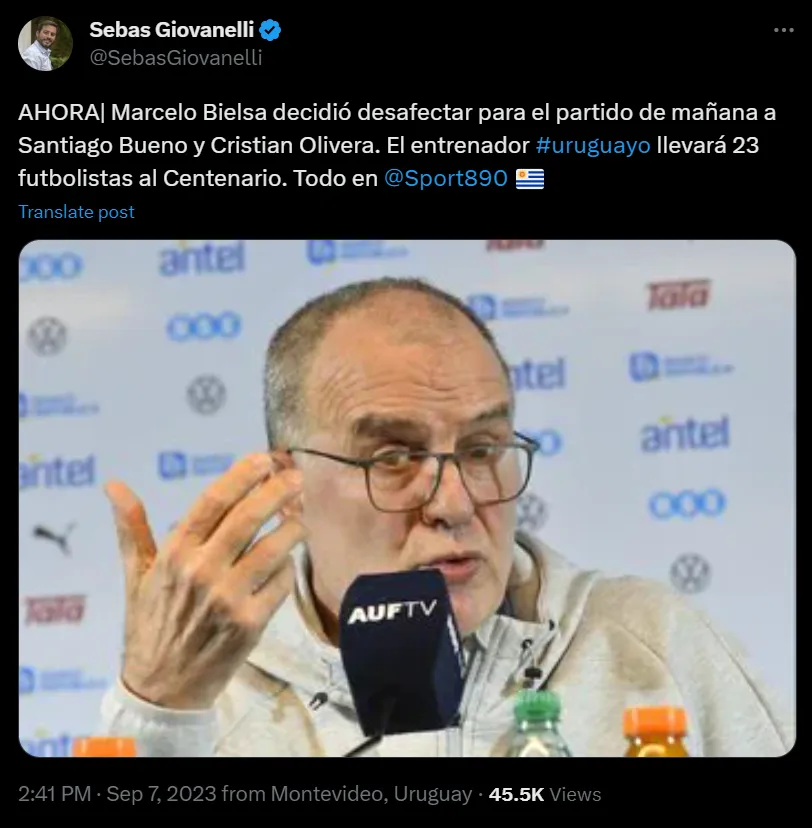 Santiago Bueno fue uno más de los jugadores uruguayos que declararon la fascinación por el detallista trabajo de Marcelo Bielsa en Uruguay. La Roja en el Centenario es el primer escollo por los puntos que debe enfrentar la Celeste. Pero el ex Girona de España no fue el único en quedar fuera de la convocatoria.