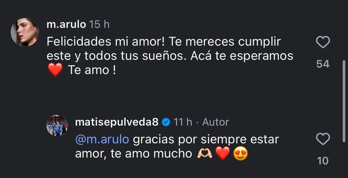 Los mensajes de felicitaciones para Matías Sepúlveda fueron encabezados por su pareja, Mariana, quien le dedicó amorosas palabras: “Felicidades mi amor. Te mereces cumplir este y todos tus sueños”.