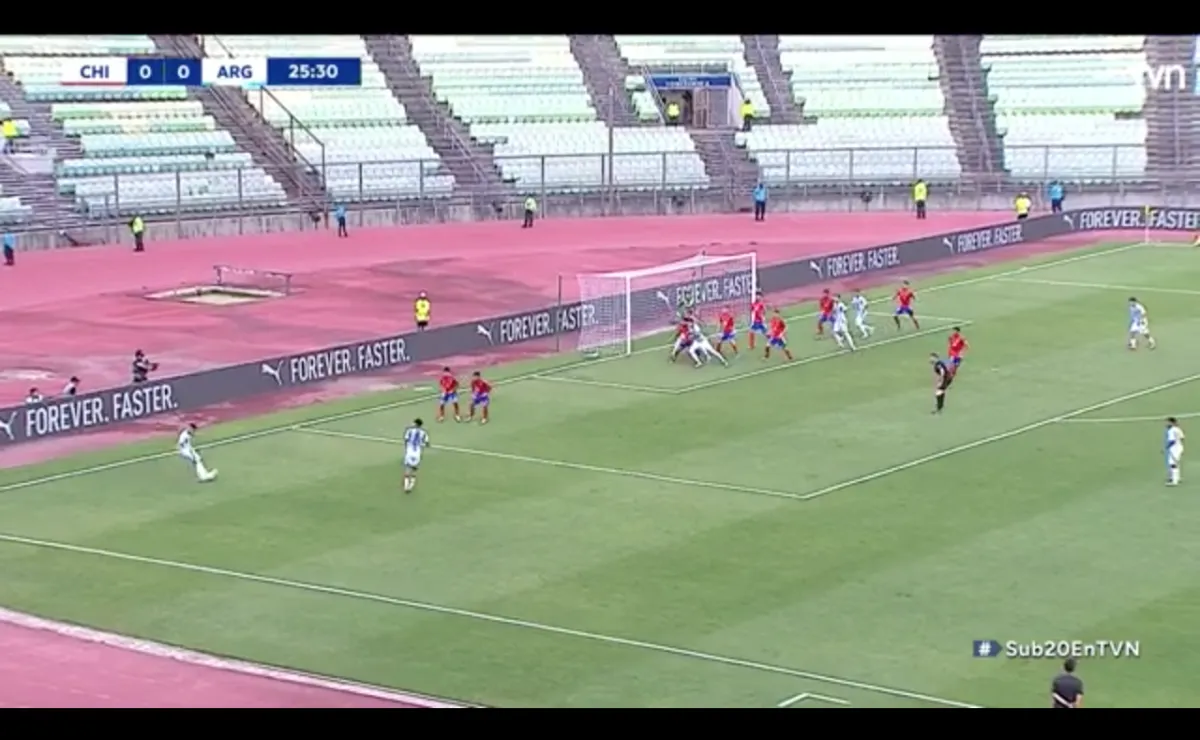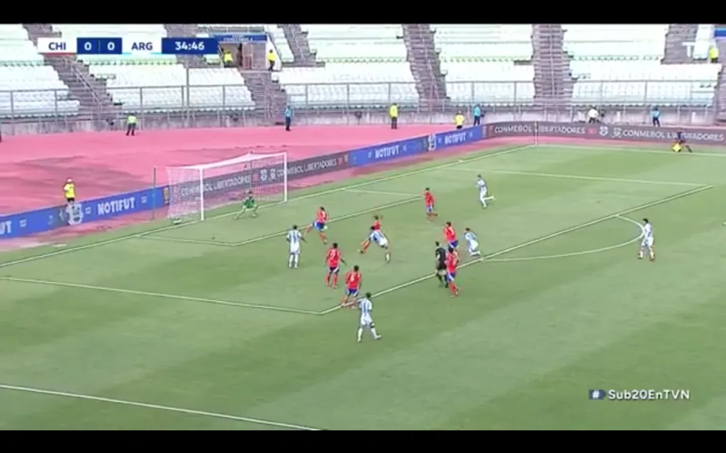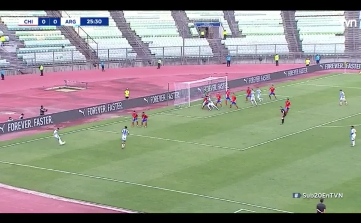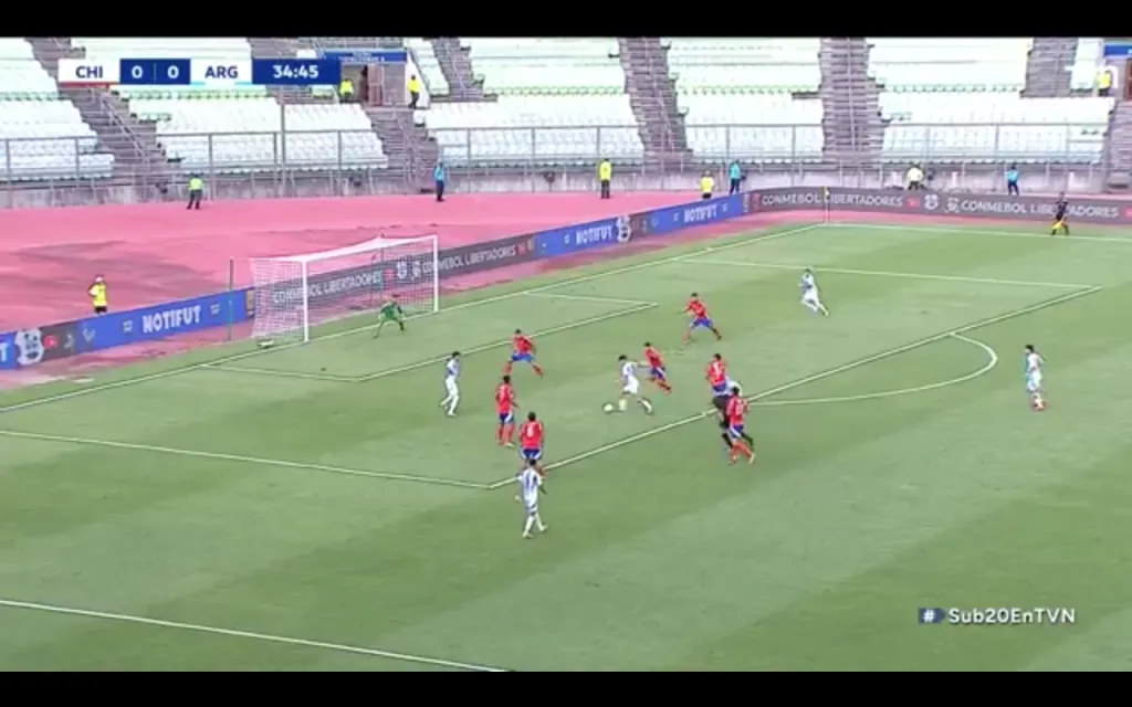 Argentina poco a poco comenzó a ser superior y dejó claras las imperfecciones del fondo chileno. Así, llegó el 1-0 por medio de Subiarbe, luego de dejar tirados defensas de la Rojita (35′).