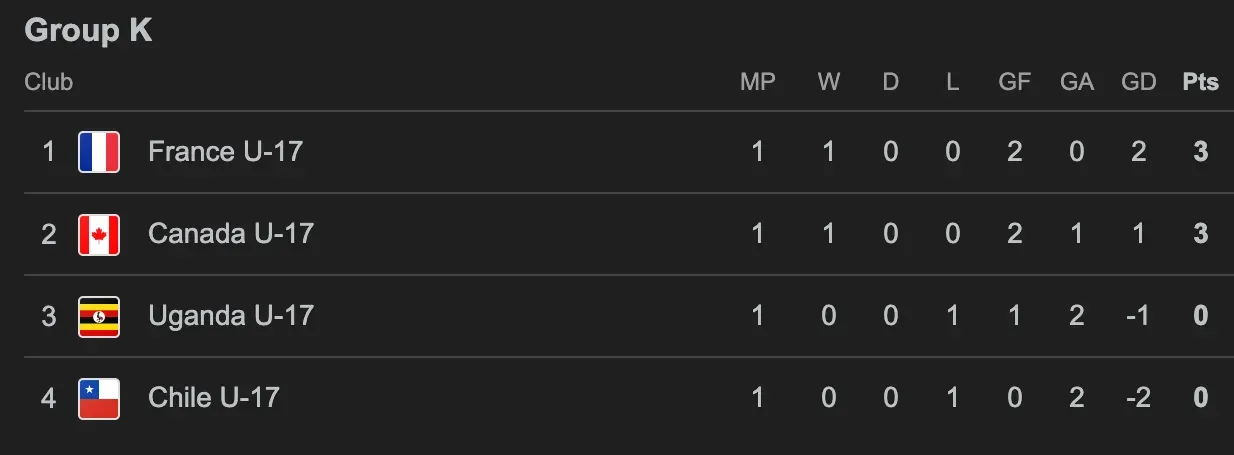Con este resultado, Chile se mantiene en el fondo de la tabla de posiciones del Grupo K. Uganda lo supera por diferencia de gol. Ahora, la Roja está obligada a superar a Canadá en la última fecha para no renunciar del todo a su sueño de clasificar a siguiente ronda.