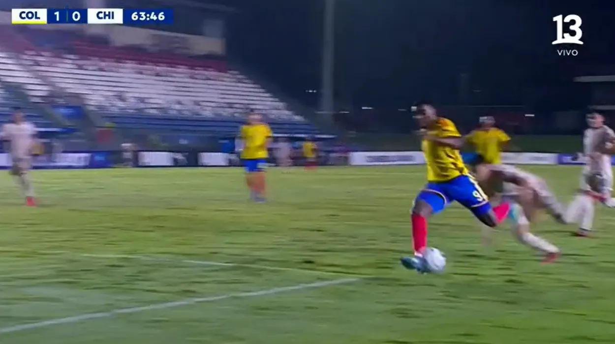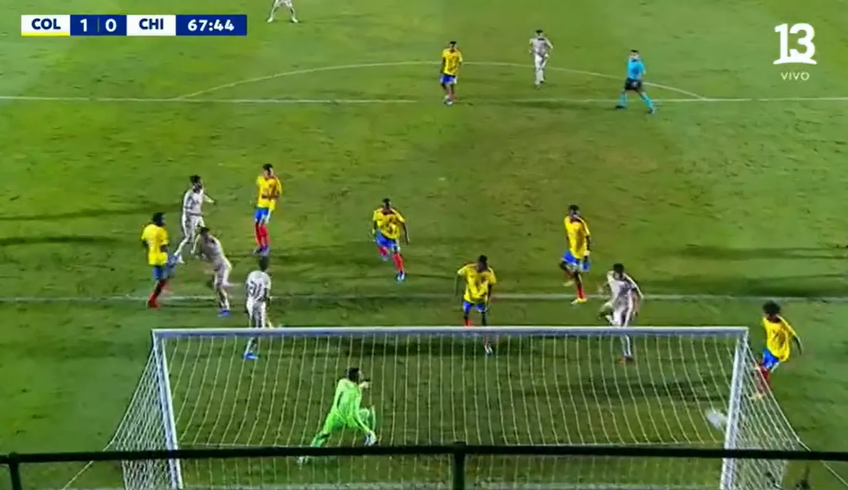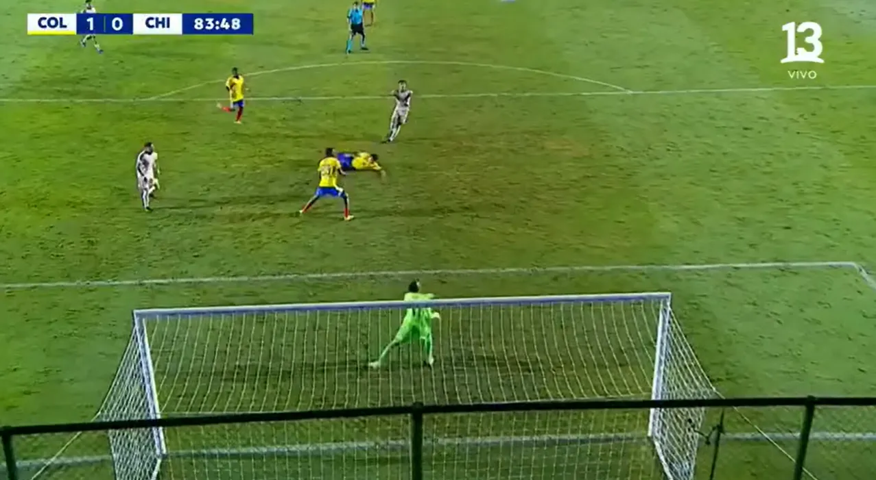Luego, cuando expiraba el primer tiempo, la cosa más incomprensible sucedió. El portero chileno, Vicente Villegas, salió a cortar un pase en profundidad hacia Sinisterra. El colombiano entró con vehemencia, lo que le molestó al portero, quien con la pelota en la mano le hizo una zancadilla. Y, obvio, el árbitro cobró penal.
