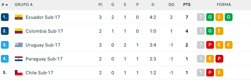 ¿Cómo quedó la tabla de posiciones del Grupo A del Sudamericano Sub 17?