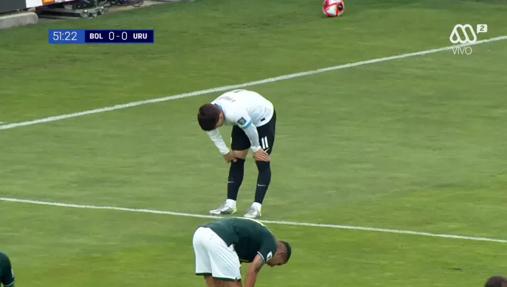 José María Giménez terminó exhausto ante Bolivia. (Captura Mega 2).