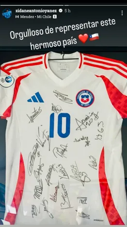 Tras haber finalizado su exitoso torneo Sub 15 con Chile y ante las dudas sobre si seguirá representando a la Roja a futuro, Zidane Yáñez espantó los rumores posteando una imagen de la camiseta nacional firmada por sus compañeros.