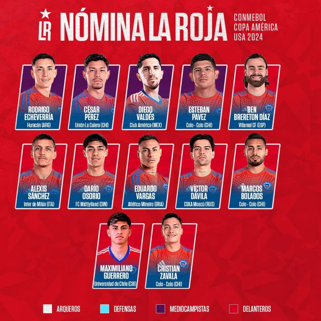 La selección chilena está definida para la Copa América de Estados Unidos 2024. El entrenador Ricardo Gareca entregó la nómina final y definitiva para el torneo continental, que será el estreno del Tigre con La Roja por los puntos.
